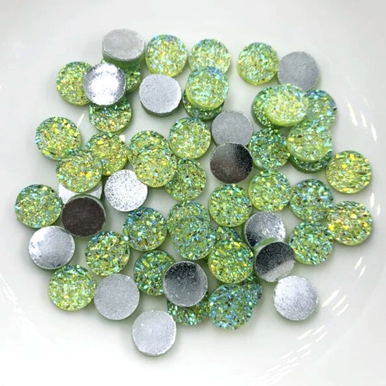 RC0079 - 10 pcs Druzy Resin Embellishment Cabochons Green Multicolor AB - 8mm - Coin Disc Style