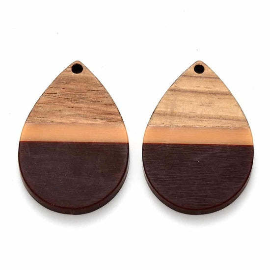 RW0008 - 4 pcs. Brown and Orange Stripe Resin and Wood Teardrop Flat Pendant - 36mm x 25mm - (1.4" x 1") - LARGE