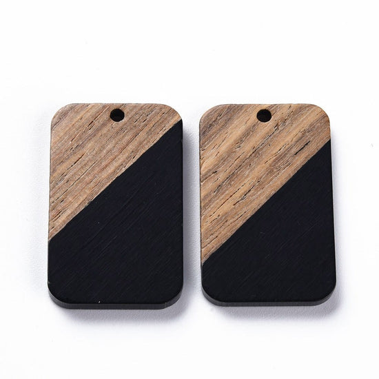 RW0020 - 4 pcs. Black Resin and Wood Rectangle Flat Pendant - 33mm x 21mm - (1.3" x 0.83") - Great for Earrings and Necklaces!