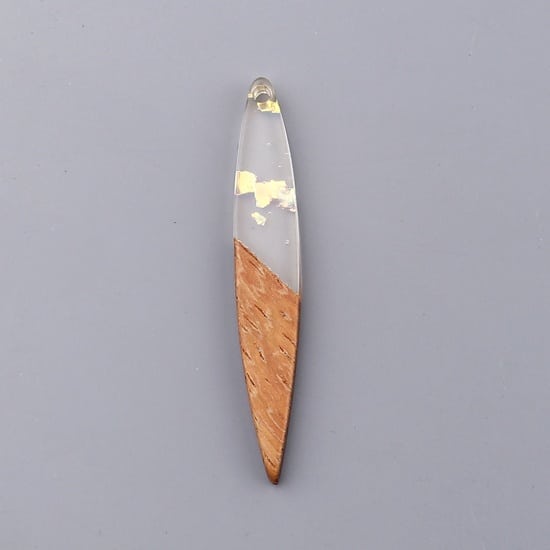 Brand NEW Clear Multicolor Flakes Resin and Wood Mandorla Flat Pendant