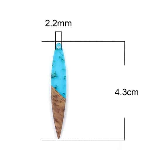 RW0034 - 4 pcs. Peacock Blue Gold Flakes Resin and Wood Mandorla Flat Pendant - 43mm x 7mm - Great for Earrings and Necklaces!