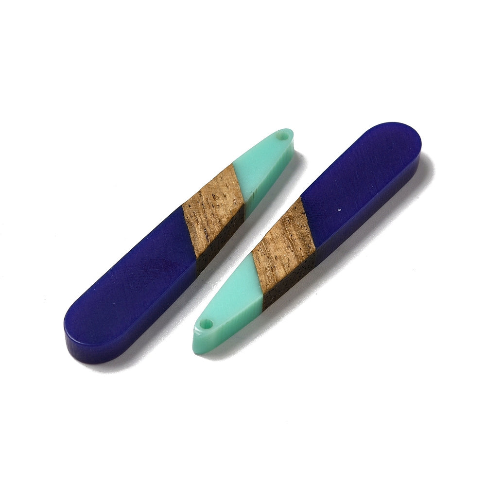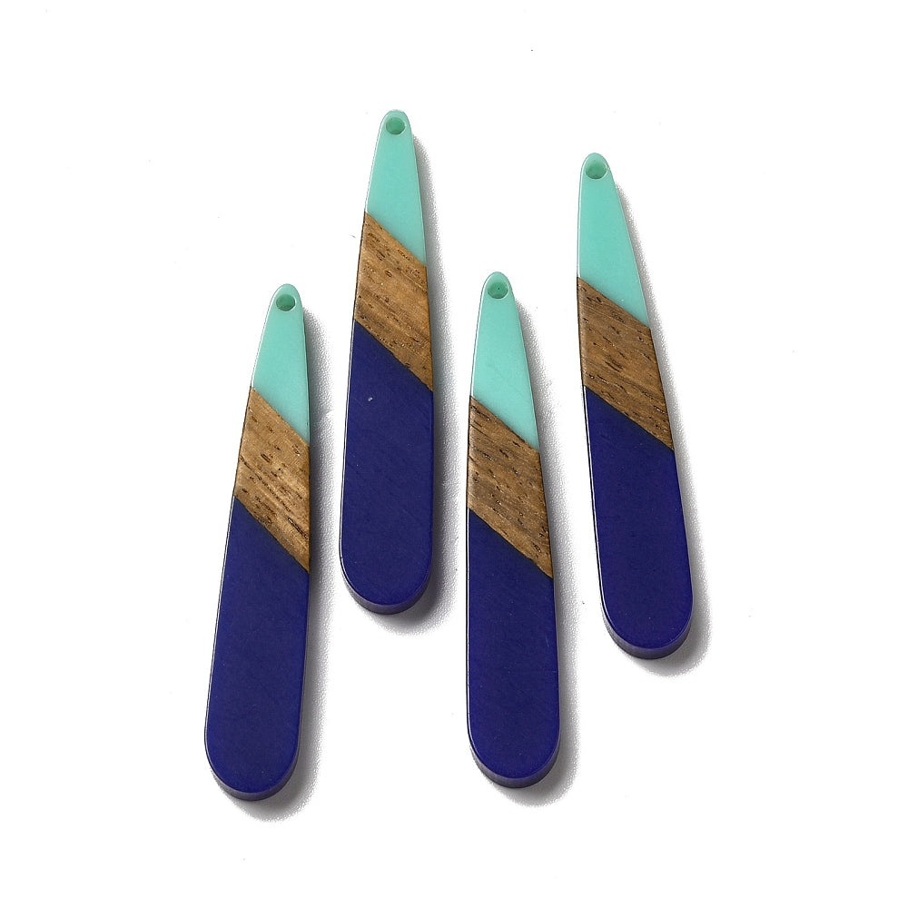 RW0060 - 4 pcs. Blue and Teal Stripe Resin and Wood Teardrop Flat Pendant - 44mm x 8mm - (1.73" x 0.32")