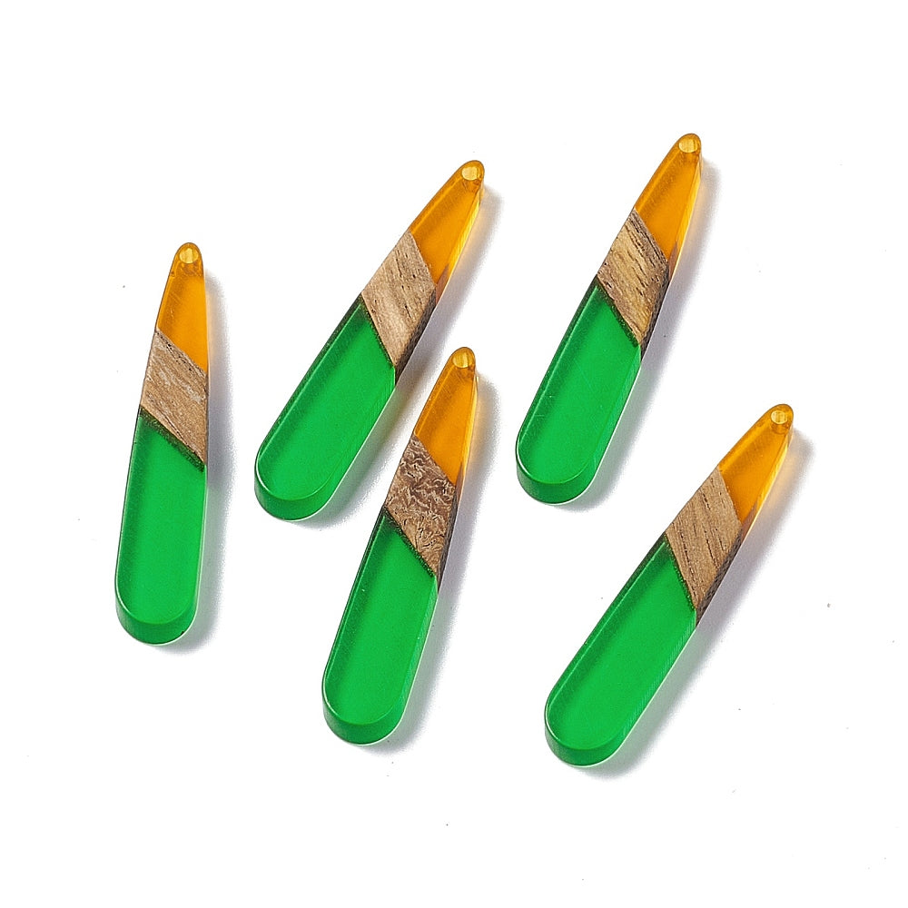 RW0067 - 4 pcs. Clear Green and Orange Stripe Resin and Wood Teardrop Flat Pendant - 44mm x 8mm - (1.73" x 0.32")