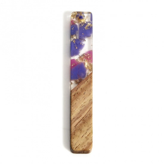 RW0070 - 4 pcs. Gold, Purple and Pink Resin and Wood Rectangle Flat Pendant - 52mm x 8mm - (2.05" x 0.32") - Great for Earrings and Necklaces!