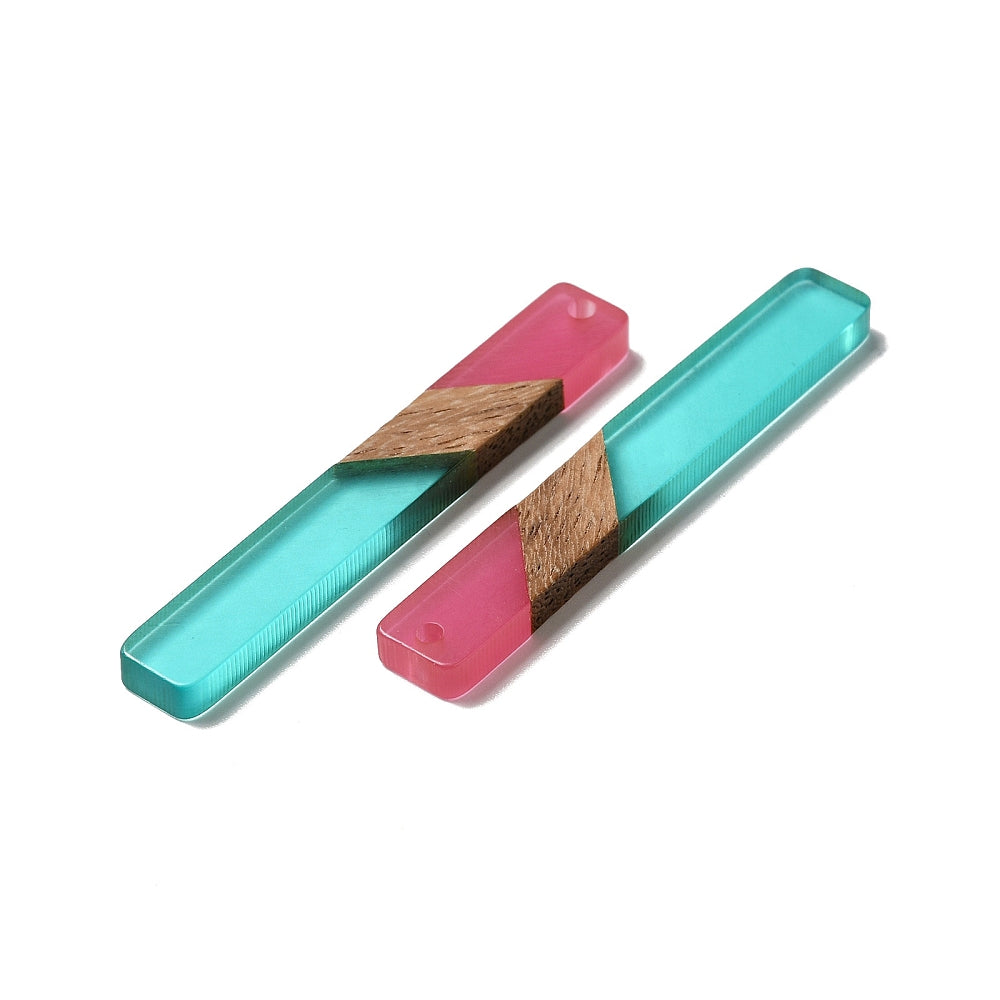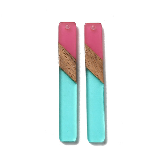 RW0081 - 4 pcs. Pink and Teal Stripe Resin and Wood Rectangle Flat Pendant - 52mm x 8mm - (2.05" x 0.32")