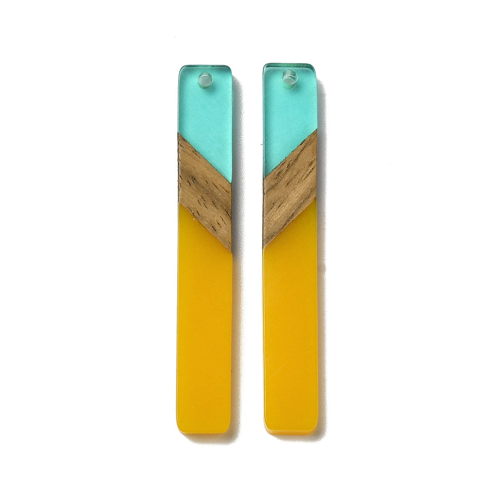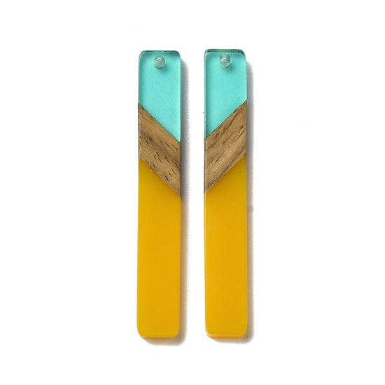 RW0082 - 4 pcs. Yellow Mustard and Aqua Stripe Resin and Wood Rectangle Flat Pendant - 52mm x 8mm - (2.05" x 0.32")