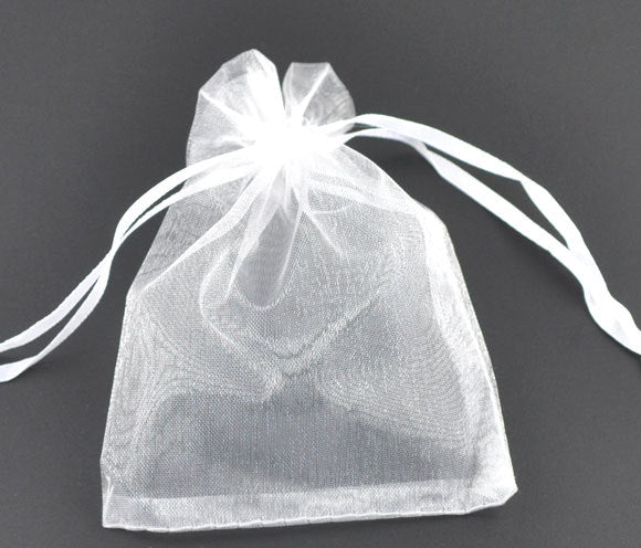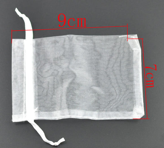 S016 - 50 pcs. White Organza Bags - 9cm x 7cm - 9x7cm
