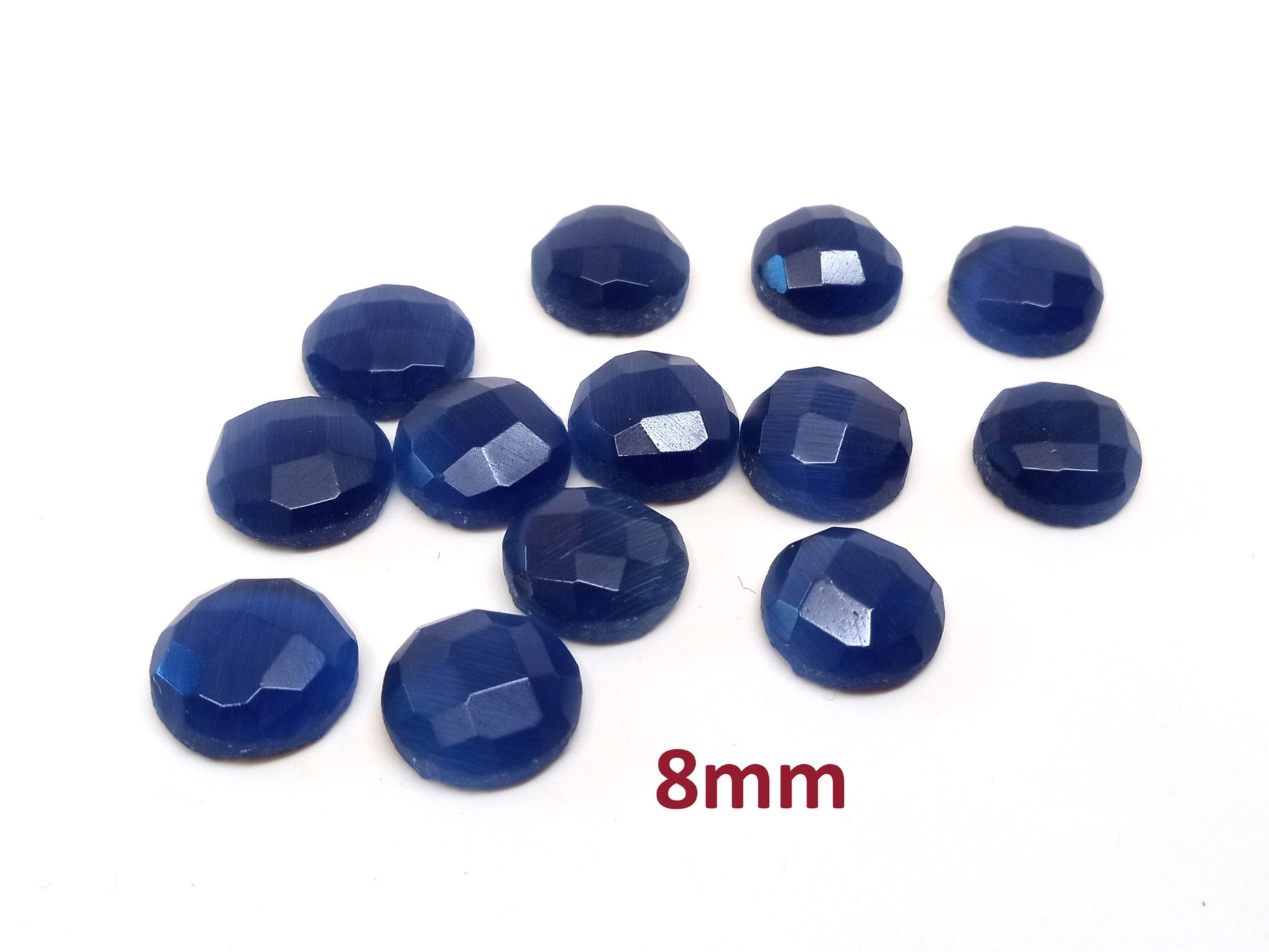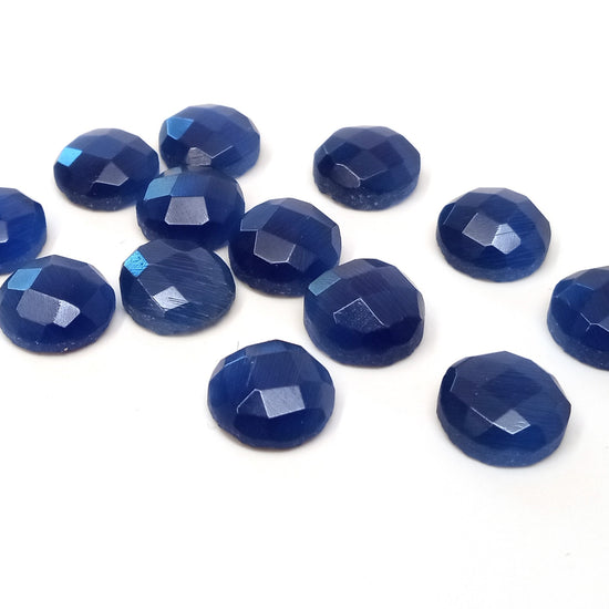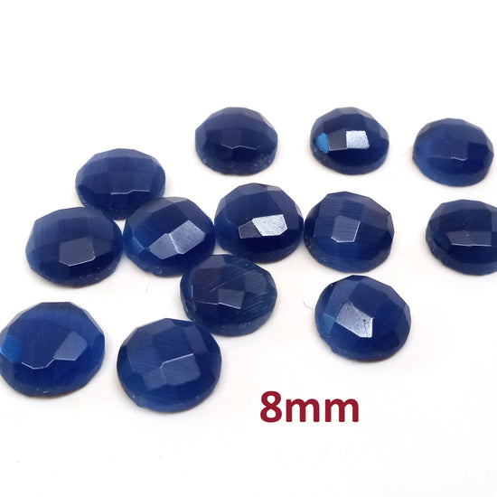 SP001 - 4 pcs Synthetic Opal Stone - Dark Blue - 8mm - Faceted - Cabochons - Made in India