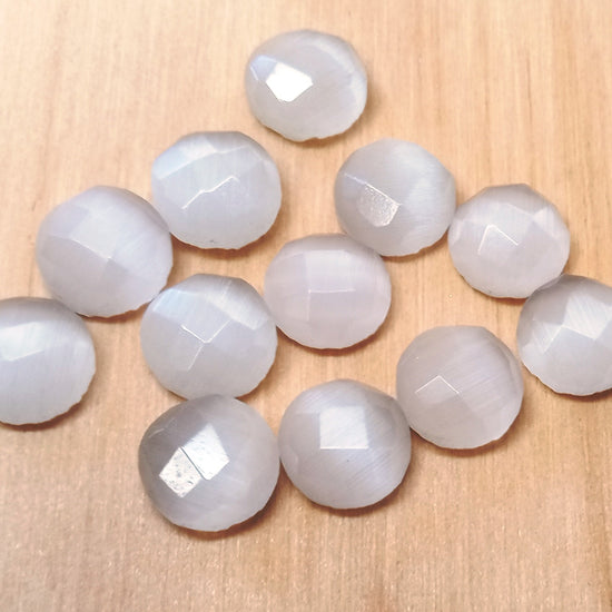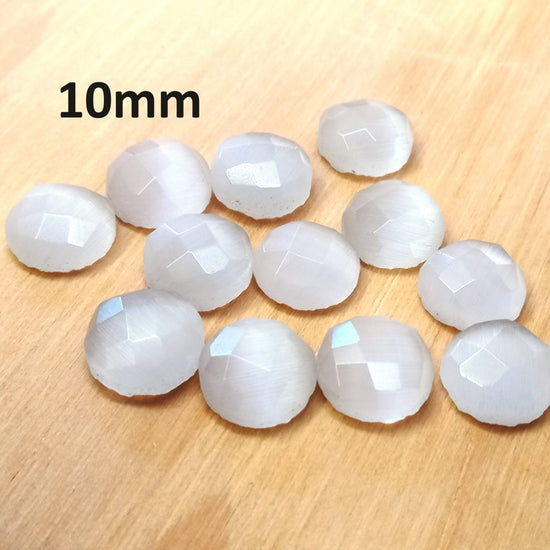 SP010 - 4 pcs Synthetic Opal Stone - White - 10mm - Faceted - Cabochons - Made in India