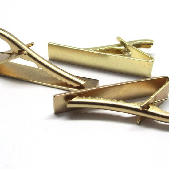 TC018 - 12 pcs Gold Plated Tie Bars/Clips - 41x8mm Glue Pad - 41mm x 8mm
