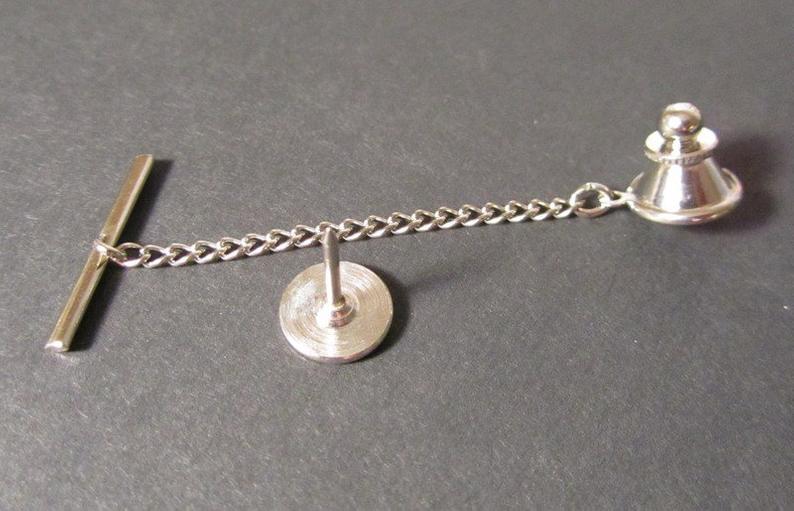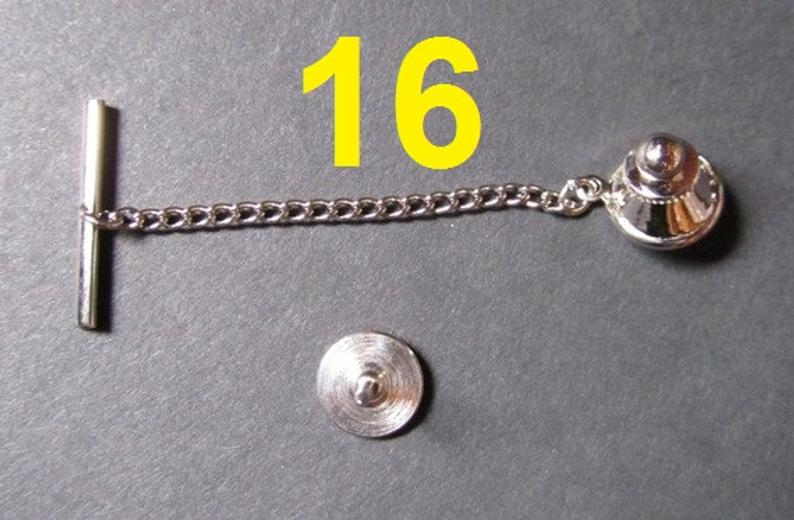 Brand NEW 16 Silver Tone TIE TACKS with Spring Loaded Clutch and Chain Sets.
