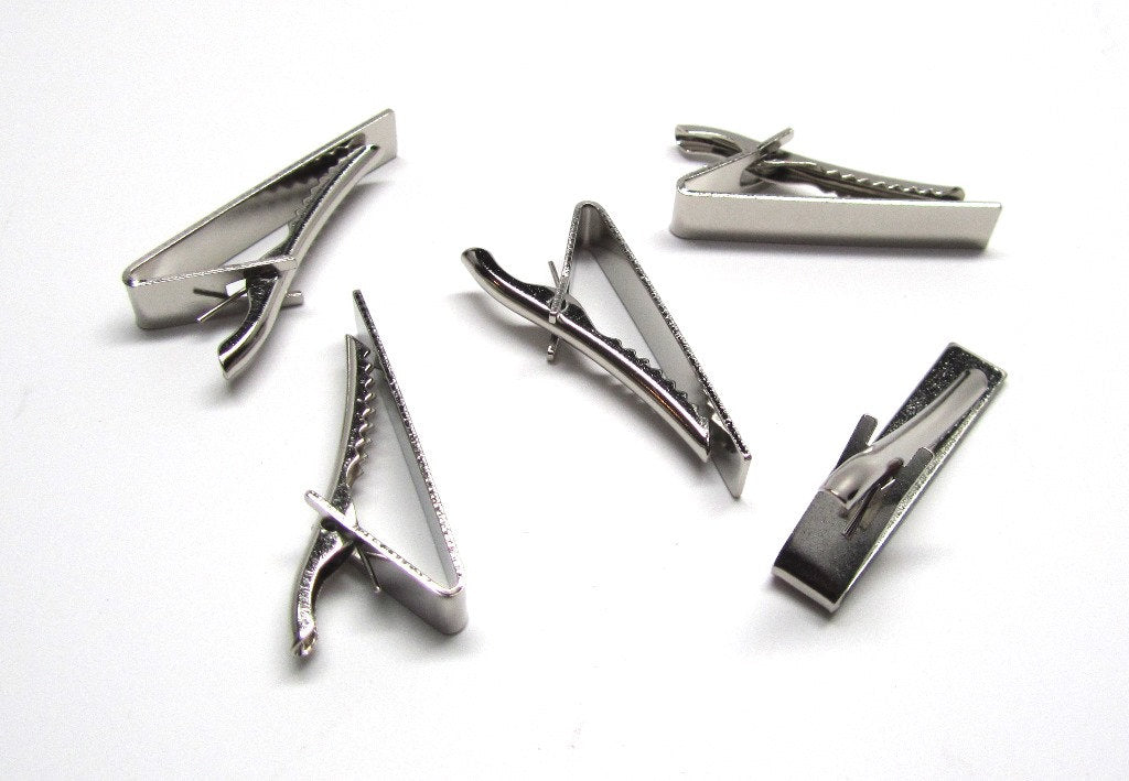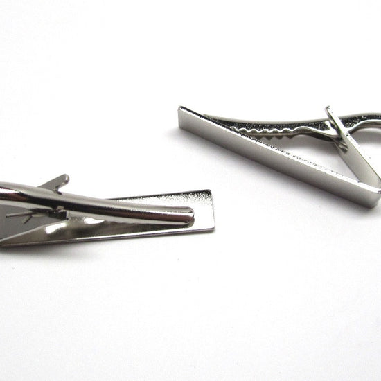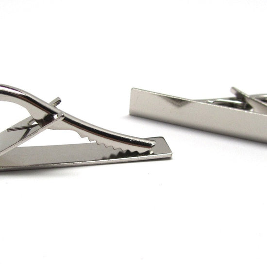 TC042 - 2 pcs Silver Tone Tie Bars/Clips - 41x8mm Glue Pad