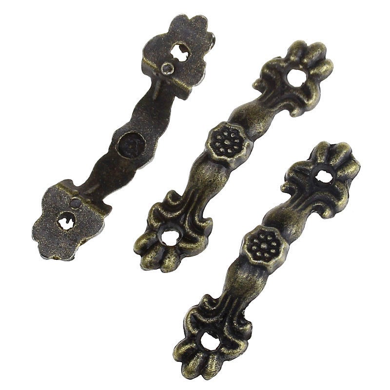 U010B - Lot of 30 Antique Bronze Handle Drawer Knob Pull Lever Hardware - 4.3cm x 1cm - Great for Jewelry Boxes! Includes Screws