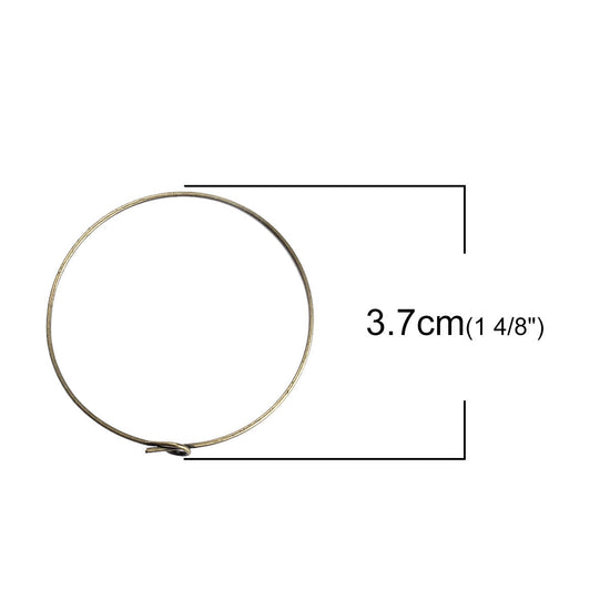 W019 - 50 pcs. Antique Bronze Unbent Wine Charm/Earwire Hoop Rings - 37mm (1.45 inch)