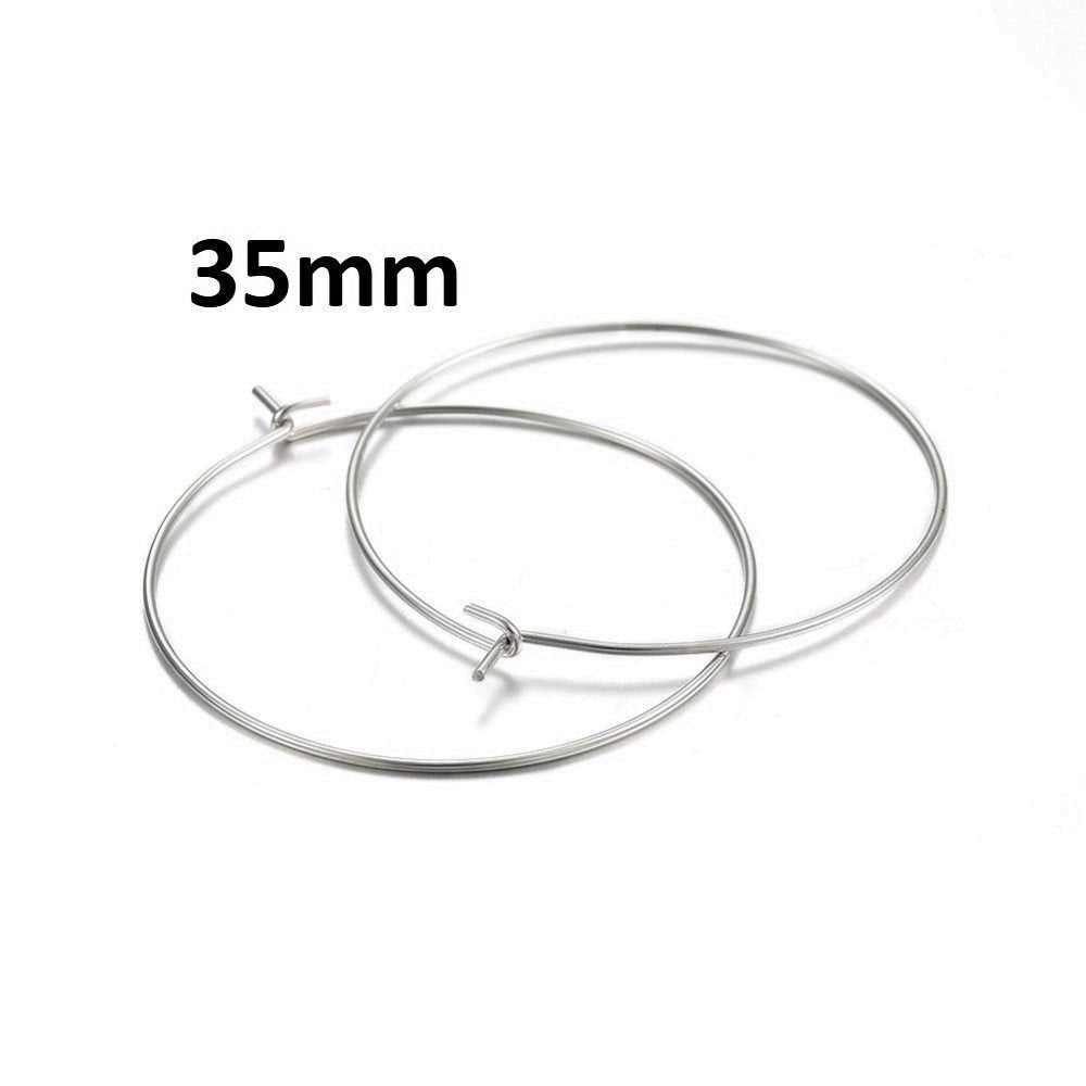 W025 - 10 pcs. 316 Stainless Steel Silver Tone Wine Charm / Earwire Hoop Rings - 35mm - 20 Gauge (0.8mm Thick) - Style B - Tarnish Resistant!