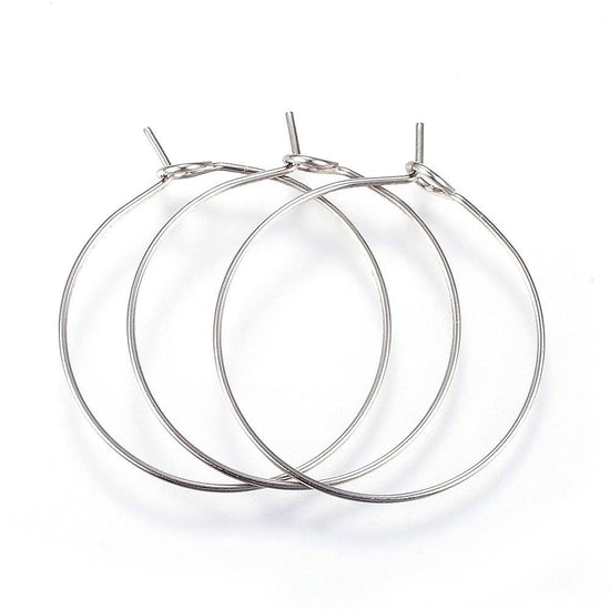 W029 - 20 pcs. 316L Surgical Stainless Steel Wine Charm / Earwire Hoop Rings - 25mm - 21 Gauge (0.7mm Thick) - Hypoallergenic! Tarnish Resistant!