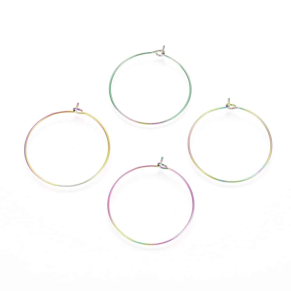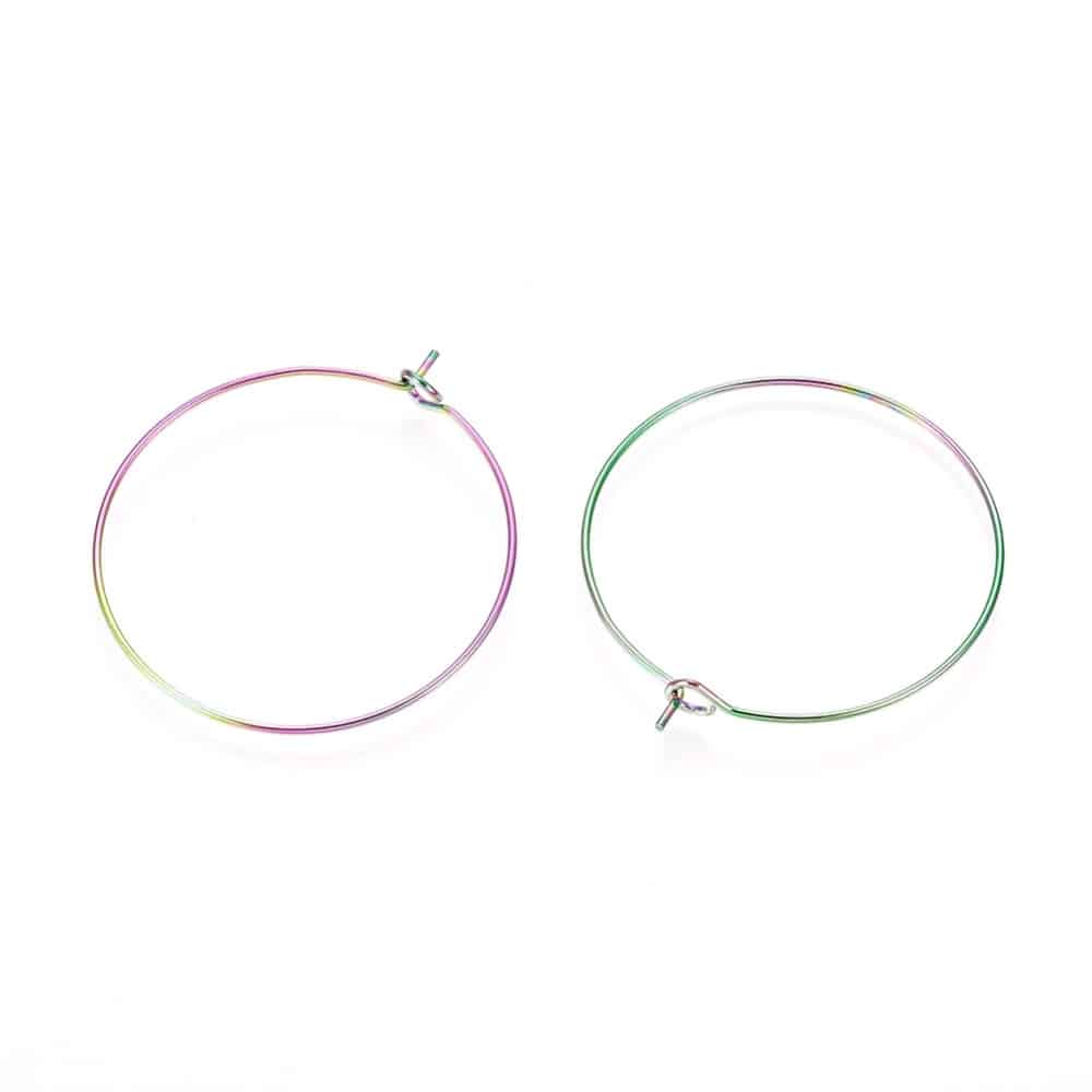 W040 - 10 pcs. 316L Surgical Stainless Steel Rainbow Wine Charm / Earwire Hoop Rings - 25mm - 20 Gauge (0.8mm Thick) - Hypoallergenic