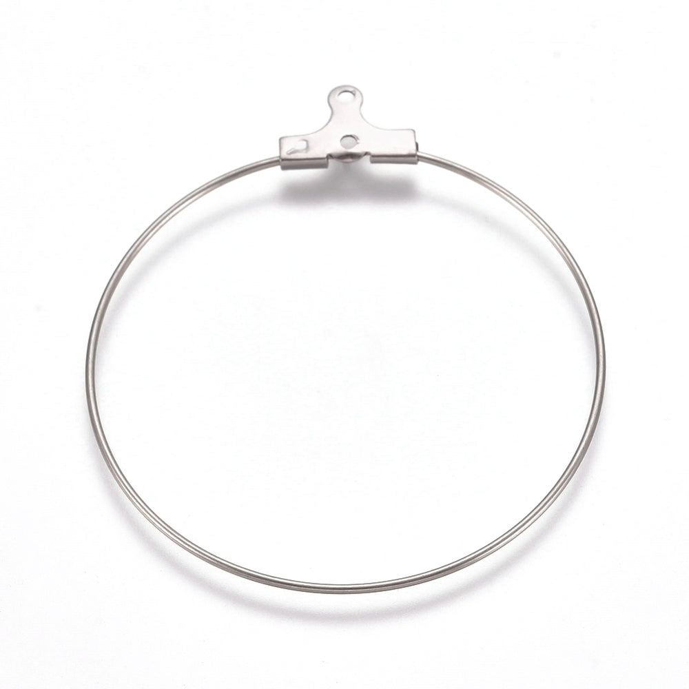 W042 - 10 pcs. 304 Stainless Steel Wine Charm / Earwire Hoop Rings - 35mm - 21 Gauge (0.7mm Thick) - Tarnish Resistant!