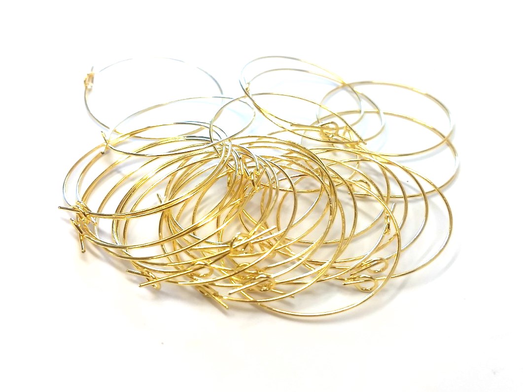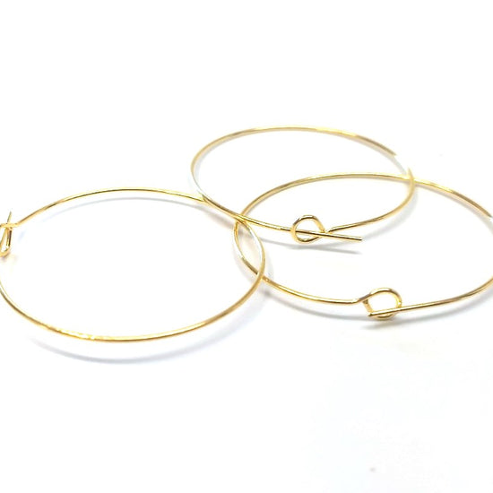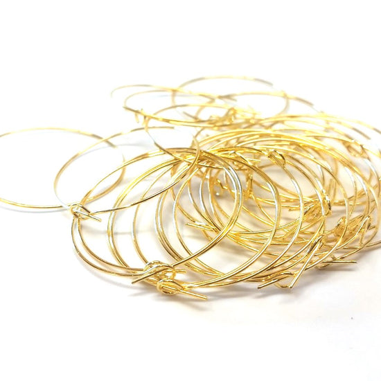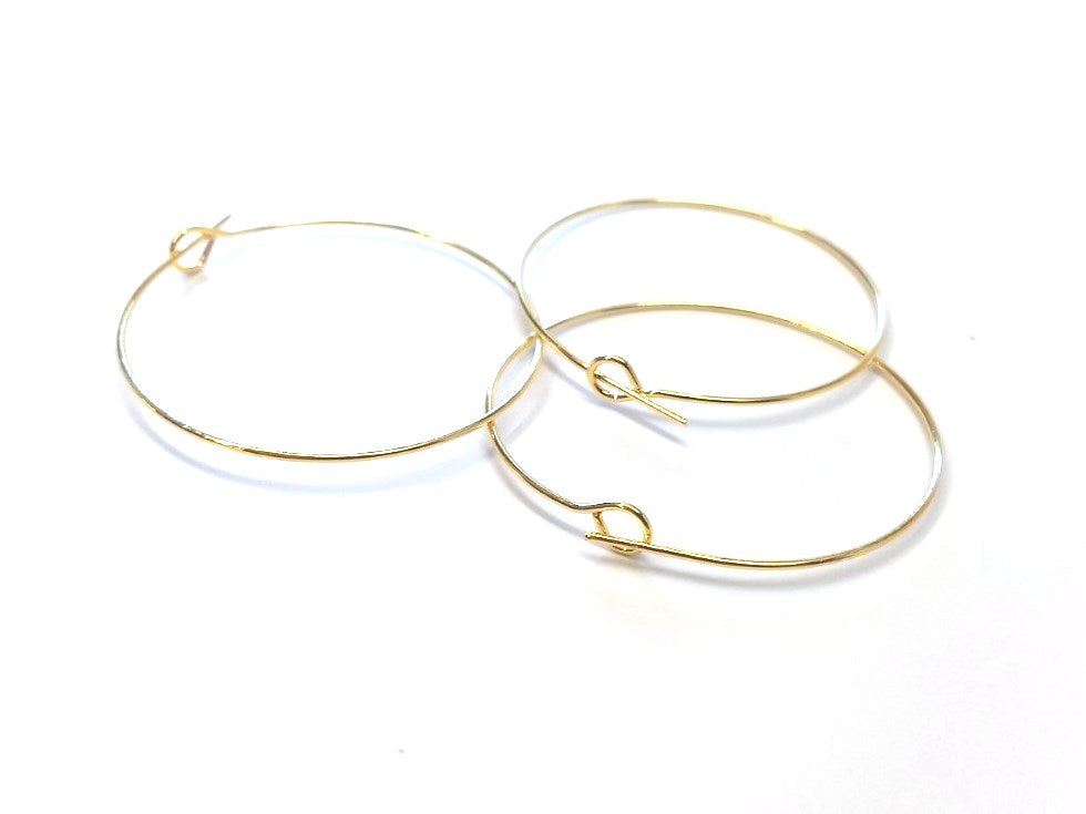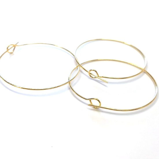 W045 - 100 pcs. Gold Plated EXTRA LARGE Unbent Wine Charm/Earwire Hoop Rings - 36mm (1.5 inch)- 21 Gauge
