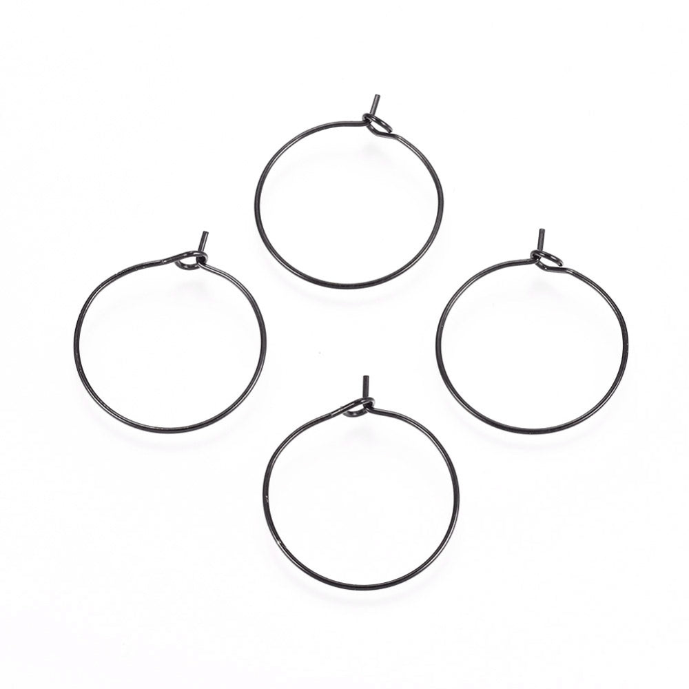 W046 - 10 pcs. 316L Surgical Stainless Steel Black Wine Charm / Earwire Hoop Rings - 20mm - 21 Gauge (0.7mm Thick) - Hypoallergenic! - Style A