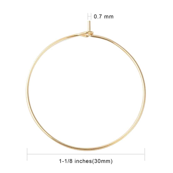 W047 - 10 pcs. 316 Stainless Steel 18K Gold Plated Wine Charm / Earwire Hoop Rings - 30mm - 21 Gauge (0.7mm Thick) - Tarnish Resistant! Style A